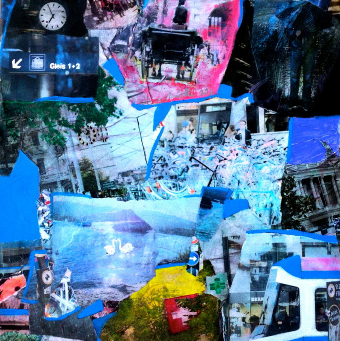 Collage with Paint on Canvas.